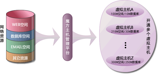 魔方主机是号缘综合商城在虚拟主机技术基础上,最近推出的一个主机新产品。简单的来说,魔方主机是一个虚拟主机合集产品,它只用一次购买网络资源(如WEB空间容量、IIS链数、数据库空间容量等),即可开通多个虚拟主机,并可随时自由分配每个虚拟主机的可用资源。